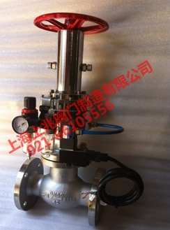 常開式切斷閥;電磁閥通電進氣,氣壓關(guān)閉閥門。關(guān)閉電磁閥排氣,閥門重新開啟。
