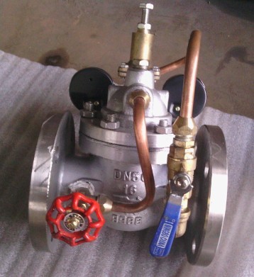 200X不銹鋼減壓閥由主閥、導(dǎo)閥、針閥、球閥、微型過(guò)濾器和壓力表組成水力控制接管系統(tǒng)。使用時(shí),當(dāng)調(diào)定出口壓力后,能自動(dòng)保持穩(wěn)定出口壓力。本產(chǎn)品利用導(dǎo)閥自力控制,不需要其它裝置和能源,保養(yǎng)簡(jiǎn)便,壓力控制準(zhǔn)確度高,受進(jìn)口壓力和流量影響小,減壓穩(wěn)壓可靠。廣泛用于高層建筑、生活區(qū)等供水管網(wǎng)系統(tǒng)及城市供水工程。 當(dāng)閥門(mén)從進(jìn)口端給水時(shí),水流過(guò)針閥進(jìn)入主閥控制室,出口壓力通過(guò)導(dǎo)管作用到導(dǎo)閥上。當(dāng)出口壓力高于導(dǎo)閥彈簧設(shè)定值時(shí),導(dǎo)閥關(guān)閉。控制室停止排水,此時(shí)主閥控制室內(nèi)壓力升高并關(guān)閉主閥,出口壓力不再升高。 當(dāng)閥門(mén)出口壓力降到導(dǎo)閥彈簧設(shè)定壓力時(shí),導(dǎo)閥開(kāi)啟,控制室向下游排水。由于導(dǎo)閥系統(tǒng)排水量大于針閥的進(jìn)水量,主閥控制室壓力下降。進(jìn)口壓力使主閥開(kāi)啟。在穩(wěn)定狀態(tài)下,控制室進(jìn)水、排水相同,主閥開(kāi)度不變,出口壓力穩(wěn)定。 調(diào)節(jié)導(dǎo)閥彈簧即可設(shè)定出口壓力。 三、200X不銹鋼 減壓閥--主要技術(shù)參數(shù):