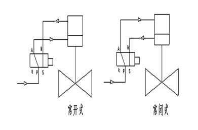 三、JDQ41Y-3.0C清洗閥--作用原理及結(jié)構(gòu)說(shuō)明 當(dāng)控制器按事先編好的程序?qū)δ硞€(gè)氣源換向閥輸出一個(gè)信號(hào),該換向閥動(dòng)作,使帶壓儀表氣源通過(guò)換向閥的切換進(jìn)入氣動(dòng)執(zhí)行機(jī)構(gòu)的氣缸上腔或下腔,推動(dòng)活塞運(yùn)動(dòng)使閥們開啟或關(guān)閉。閥門的操作連接方式(如圖所示)。緊急切斷閥