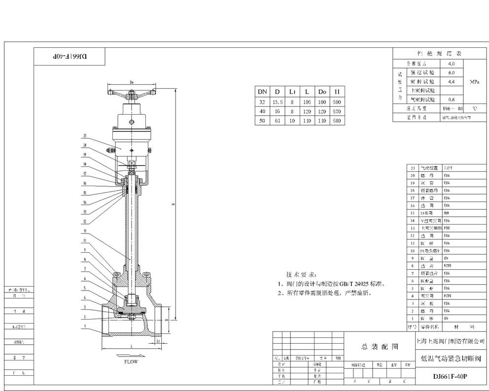 DJ661F-40P_氣動(dòng)不銹鋼低溫切斷閥圖紙: