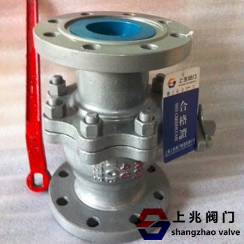 氨用球閥與普法蘭式球閥相同。啟閉件為一個球體, 液氨緊急切斷閥利用球體繞閥桿的軸線旋轉(zhuǎn)90度實現(xiàn)開啟和關(guān)閉的目的。主要由閥體、球體、閥座、閥桿、手柄等部件組成。Q41B氨用球閥采用鑄鋼二段法蘭式,由右閥體與左閥體組合為一體。左閥體為法蘭管形與左閥體碗面相配,內(nèi)部各置配一閥座密封圈,在它們之間夾緊一個球體,球體上有通孔,通孔的直徑等于管道的內(nèi)徑。