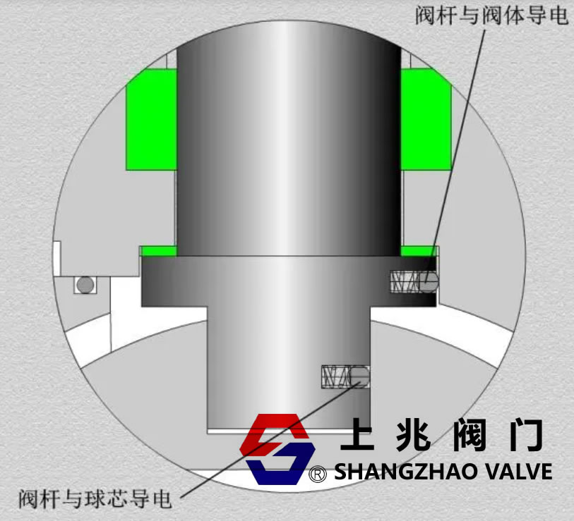防靜電結(jié)構(gòu)。國(guó)標(biāo)GB/T12237規(guī)定,對(duì)于通徑≤DN50的球閥,閥桿和閥體之間能導(dǎo)電。對(duì)于>DN50的球閥,要保證球芯,閥桿,閥體之間能導(dǎo)電。