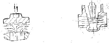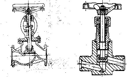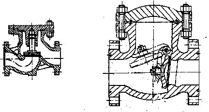 注:PN≤1.0MPa的灰鑄鐵閥體和PN≥2.5MPa的碳素鋼閥體,省略本代號(hào)。 第二章 閥門的類型和用途 閥門類型繁多,本文只介紹常用閥門 第一節(jié) 閘 閥 閘閥是指關(guān)閉件(閘板)沿通路中心線的垂直方向移動(dòng)的閥門。 閘閥在管路中主要作切斷用。 閘閥是使用很廣的一種閥門,一般口徑DN≥50mm的切斷裝置都選用它,有時(shí)口徑 很小的切斷裝置也選用閘閥,閘閥有以下優(yōu)點(diǎn): ①流體阻力小。 ②開閉所需外力較小。 ③介質(zhì)的流向不受限制。 ④全開時(shí),密封面受工作介質(zhì)的沖蝕比截止閥小。 ⑤體形比較簡單,鑄造工藝性較好。 閘閥也有不足之處: ①外形尺寸和開啟高度都較大。安裝所需空間較大。 ②開閉過程中,密封面間有相對摩擦,容易引起擦傷現(xiàn)象。 ③閘閥一般都有兩個(gè)密封面,給加工、研磨和維修增加一些困難。 一、閘閥的種類 1. 按閘板的構(gòu)造可分 1)平行式閘閥:密封面與垂直中心線平行,即兩個(gè)密封面互相平行的閘閥。如圖2—12所示。 ![]() 在平行式閘閥中,以帶推力楔塊的結(jié)構(gòu)最常為常見,既在兩閘板中間有雙面推力楔塊,這種閘閥適用于低壓中小口徑(DN40—300mm)閘閥。也有在兩閘板間帶有彈簧的,彈簧能產(chǎn)生予緊力,有利于閘板的密封。 2)楔式閘閥:密封面與垂直中心線成某種角度,即兩個(gè)密封面成楔形的閘閥如圖2—13所示。 密封面的傾斜角度一般有2°52′,3°30′,5°, 8°, 10°等,角度的大小主要取決于介質(zhì)溫度的高低。一般工作溫度愈高,所取角度應(yīng)愈大,以減小溫度變化時(shí)發(fā)生楔住的可能性。 在楔式閘閥中,又有單閘板,雙閘板和彈性閘板之分。單閘板楔式閘閥,結(jié)構(gòu)簡單,使用可靠,但對密封面角度的精度要求較高,加工和維修較困難,溫度變化時(shí)楔住的可能性很大。雙閘板楔式閘閥在水和蒸氣介質(zhì)管路中使用較多。它的優(yōu)點(diǎn)是:對密封面角度的精度要求較低,溫度變化不易引起楔住的現(xiàn)象,密封面磨損時(shí),可以加墊片補(bǔ)償。但這種結(jié)構(gòu)零件較多,在粘性介質(zhì)中易粘結(jié),影響密封。更主要是上、下?lián)醢彘L期使用易產(chǎn)生銹蝕,閘板容易脫落。彈性閘板楔式閘閥,它具有單閘板楔式閘閥結(jié)構(gòu)簡單,使用可靠的優(yōu)點(diǎn),又能產(chǎn)生微量的彈性變形彌補(bǔ)密封面角度加工過程中產(chǎn)生的偏差,改善工藝性,現(xiàn)已被大量采用。 2. 按閥桿的構(gòu)造閘閥又可分為 1) 明桿閘閥:閥桿螺母在閥蓋或支架上,開閉閘板時(shí),用旋轉(zhuǎn)閥桿螺母來實(shí)現(xiàn)閥桿的升降。如圖2—12所示。這種結(jié)構(gòu)對閥桿的潤滑有利,開閉程度明顯,因此被廣泛采用。 2) 暗桿閘閥:閥桿螺母在閥體內(nèi),與介質(zhì)直接接觸。開閉閘板時(shí),用旋轉(zhuǎn)閥桿來實(shí)現(xiàn)。如圖2—14所示。這種結(jié)構(gòu)的優(yōu)點(diǎn)是:閘閥的高度總保持不變,因此安裝空間小,適用于大口徑或?qū)Π惭b空間受限制的閘閥。此種結(jié)構(gòu)要裝有開閉指示器,以指示開閉程度。這種結(jié)構(gòu)的缺點(diǎn)是:閥桿螺紋不僅無法潤滑,而且直接接受介質(zhì)侵蝕,容易損壞。 ![]() 二、閘閥的通徑收縮 如果一個(gè)閥體內(nèi)的通道直徑不一樣(往往都是閥座處的通徑小于法蘭連接處的通徑),稱為通徑收縮。如圖2—15所示。 通徑收縮能使零件尺寸縮小,開、閉所需力相應(yīng)減小,同時(shí)可擴(kuò)大零部件的應(yīng)用范圍。但通徑收縮后。流體阻力損失增大。 在某些部門的某些工作條件下(如石油部門的輸油管線),不允許采用通徑收縮的閥門。這一方面是為了減小管線的阻力損失,另一方面是為了避免通徑收縮后給機(jī)械清掃管線造成障礙。 第二節(jié) 截止閥 截止閥是關(guān)閉件(閥瓣)沿閥座中心線移動(dòng)的閥門。 截止閥在管路中主要作切斷用。截止閥有以下優(yōu)點(diǎn): 1. 在開閉過程中密封面的摩擦力比閘閥小,耐磨。 2. 開啟高度小。 3. 通常只有一個(gè)密封面,制造工藝好,便于維修。 截止閥使用較為普遍,但由于開閉力矩較大,結(jié)構(gòu)長度較長,一般公稱通徑都限制在DN≤200mm以下。截止閥的流體阻力損失較大。因而限制了截止閥更廣泛的使用。 截止閥的種類很多,根據(jù)閥桿上螺紋的位置可分: 一、上螺紋閥桿截止閥 截止閥閥桿的螺紋在閥體的外面。其優(yōu)點(diǎn)是閥桿不受介質(zhì)侵蝕,便于潤滑,此種結(jié)構(gòu)采用比較普遍。如圖 2—8所示。 二、下螺紋閥桿截止閥 截止閥閥桿的螺紋在閥體內(nèi)。這種結(jié)構(gòu)閥桿螺紋與介質(zhì)直接接觸,易受侵蝕,并無法潤滑。此種結(jié)構(gòu)用于小口徑和溫度不高的地方。如圖 2—9所示。 ![]() 根據(jù)截止閥的通道方向,又可分為;直通式截止閥,角式截止閥和三通式截止閥,后兩種截止閥通常做改變介質(zhì)流向和分配介質(zhì)用。 第三節(jié) 節(jié)流閥 節(jié)流閥是指通過改變通道面積達(dá)到控制或調(diào)節(jié)介質(zhì)流量與壓力的閥門。 節(jié)流閥在管路中主要作節(jié)流使用。 最常見的節(jié)流閥是采用截止閥改變閥瓣形狀后作節(jié)流用。但用改變截止閥或閘閥開啟高度來作節(jié)流用是極不合適的,因?yàn)榻橘|(zhì)在節(jié)流狀態(tài)下流速很高,必然會(huì)使密封面沖蝕磨損,