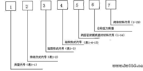 二、按用途,根據(jù)閥門的不同用途可分: 1. 開斷用:用來接通或切斷管路介質(zhì),如截止閥、閘閥、球閥、蝶閥等。 2. 止回用:用來防止介質(zhì)倒流,如止回閥。 3. 調(diào)節(jié)用:用來調(diào)節(jié)介質(zhì)的壓力和流量,如調(diào)節(jié)閥、減壓閥。 4. 分配用:用來改變介質(zhì)流向、分配介質(zhì),如三通旋塞、分配閥、滑閥等。 5. 安全閥:在介質(zhì)壓力超過規(guī)定值時(shí),用來排放多余的介質(zhì),保證管路系統(tǒng)及設(shè) 備安全,如安全閥、事故閥。 6. 他特殊用途:如疏水閥、放空閥、排污閥等。 ![]() ![]() ![]() 三、按驅(qū)動(dòng)方式,根據(jù)不同的驅(qū)動(dòng)方式可分: 1. 手動(dòng):借助手輪、手柄、杠桿或鏈輪等,有人力驅(qū)動(dòng),傳動(dòng)較大力矩時(shí),裝有 蝸輪、齒輪等減速裝置。 2. 電動(dòng):借助電機(jī)或其他電氣裝置來驅(qū)動(dòng)。 3. 液動(dòng):借助(水、油)來驅(qū)動(dòng)。 4. 氣動(dòng);借助壓縮空氣來驅(qū)動(dòng)。 四、按壓力,根據(jù)閥門的公稱壓力可分: 1. 真空閥:絕對壓力<0.1Mpa即760mm汞柱高的閥門,通常用mm汞柱或mm 水柱表示壓力。 2. 低壓閥:公稱壓力PN≤1.6Mpa的閥門(包括PN≤1.6MPa的鋼閥) 3. 中壓閥:公稱壓力PN2.5—6.4MPa的閥門。 4. 高壓閥:公稱壓力PN10.0—80.0MPa的閥門。 5. 超高壓閥:公稱壓力PN≥100.0MPa的閥門。 五、按介質(zhì)的溫度分,根據(jù)閥門工作時(shí)的介質(zhì)溫度可分: 1. 普通閥門:適用于介質(zhì)溫度-40℃~425℃的閥門。 2. 高溫閥門:適用于介質(zhì)溫度425℃~600℃的閥門。 3. 耐熱閥門:適用于介質(zhì)溫度600℃以上的閥門。 4. 低溫閥門:適用于介質(zhì)溫度-40℃~ -150℃的閥門。 5. 超低溫閥門:適用于介質(zhì)溫度-150℃以下的閥門。 六、按公稱通徑分,根據(jù)閥門的公稱通徑可分: 1. 小口徑閥門:公稱通徑DN<40mm的閥門。 2. 中口徑閥門:公稱通徑DN50~300mm的閥門。 3. 大口徑閥門:公稱通徑DN350~1200mm的閥門。 4. 特大口徑閥門:公稱通徑DN≥1400mm的閥門。 七、按與管道連接方式分,根據(jù)閥門與管道連接方式可分; 1. 法蘭連接閥門:閥體帶有法蘭,與管道采用法蘭連接的閥門。 2. 螺紋連接閥門:閥體帶有內(nèi)螺紋或外螺紋,與管道采用螺紋連接的閥門。 3. 焊接連接閥門:閥體帶有焊口,與管道采用焊接連接的閥門。 4. 夾箍連接閥門:閥體上帶有夾口,與管道采用夾箍連接的閥門。 5. 卡套連接閥門:采用卡套與管道連接的閥門。 第三節(jié) 閥門的型號(hào)編制方法 一、閥門的型號(hào) 閥門的型號(hào)是用來表示閥類、驅(qū)動(dòng)及連接形式、密封圈材料和公稱壓力等要素的。 由于閥門種類繁雜,為了制造和使用方便,國家對閥門產(chǎn)品型號(hào)的編制方法做了統(tǒng)一規(guī)定。閥門產(chǎn)品的型號(hào)是由七個(gè)單元組成,用來表明閥門類別、驅(qū)動(dòng)種類、連接和結(jié)構(gòu)形式、密封面或襯里材料、公稱壓力及閥體材料。 閥門型號(hào)的組成由七個(gè)單元順序組成(見下表) ![]() 1.閥門的類型代號(hào) 表 1—1