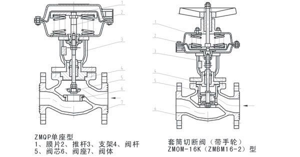 3、 主意務(wù)必按ZMQM氣動薄膜套筒切斷所示的介質(zhì)流動方向(閥體上的箭頭)安裝電動單座調(diào)節(jié)閥。