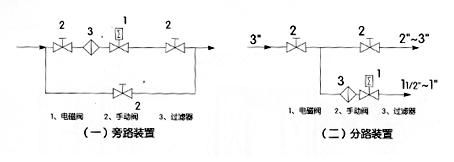 1、安裝時電磁閥線圈向上,并保持垂直位置,電磁閥上箭頭或標記應與管道流向一致,不得安裝在有濺水或漏水的地方。 2、電磁閥的工作介質應清潔無顆粒雜質,電磁閥內件表面上的污物及過濾器,需定期清潔干凈。 3、在電磁閥發(fā)生故障時,為了及時隔離電磁閥,并保證系統(tǒng)正常運行,最好安裝旁路裝置(如圖一)。 4、在管路系統(tǒng)中,安裝在支路上的電磁閥通徑應小于主管道閥門的通徑(如圖二)。 5、安裝電磁閥前,管道必須清洗干凈。建議在電磁閥前安裝過濾器,蒸汽管道安裝疏水閥。 6、不能將電磁閥安裝在管道的低凹處,以免因蒸汽冷凝水、雜質等沉淀在閥內而防礙動作。 7、普通型電磁閥不能在爆炸危險場合使用。 8、在管路剛性不足情況下,建議把電磁閥前管道用支架固定,以免電磁閥工作時引起振動。 9、在安裝電磁閥前,要注意看清產品電磁閥標牌,認真閱讀使用說明書電磁閥,判斷電磁閥產品是否符合使用條件。 10、電磁閥前后管道上需安裝壓力表,以便觀察管道壓力。