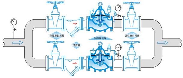 200X減壓穩(wěn)壓閥由主閥、導閥、針閥、球閥、微型過濾器和壓力表組成水力控制接管系統(tǒng)。使用時,當調定出口壓力后,能自動保持穩(wěn)定出口壓力。本產品利用導閥自力控制,不需要其它裝置和能源,保養(yǎng)簡便,壓力控制準確度高,受進口壓力和流量影響小,減壓穩(wěn)壓可靠。廣泛用于高層建筑、生活區(qū)等供水管網系統(tǒng)及城市供水工程。