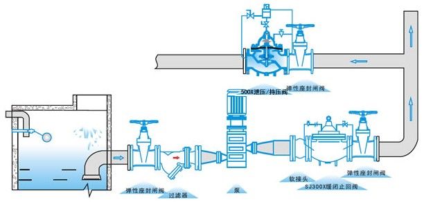 500X泄壓閥/持壓閥由主閥、泄壓/持壓導閥針閥、球閥、微形過濾器和壓力表組成水力控制接管系統(tǒng)。利用水力自動操作,即可以作泄壓閥用又可作持壓閥用。作泄壓閥用時,可維持供水路壓力在設定的安全值之下;做持壓閥用,可維持主閥上游水壓在設定值之上,保持主閥上游供水壓力。 二、500X泄壓閥/持壓閥--工作原理