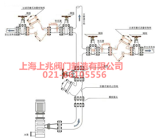 六、YQ98001型過濾活塞式可調(diào)減壓閥--安裝方法及連接要求: 一、根據(jù)工況的減壓特性,必須在該閥前安裝 閘閥; 二、方便日后對(duì)該閥進(jìn)行檢修工作.必須在減壓閥后安裝可曲繞軟連接; 三‘最佳安裝方式為臥式,其它方位也可以接受; 四、必須留出足夠的工作空間方便檢修; 五、吊裝時(shí)采用有效措施進(jìn)行.也可利用該閥吊環(huán)進(jìn)行。 七、YQ98001型過濾活塞式可調(diào)減壓閥--安裝圖: