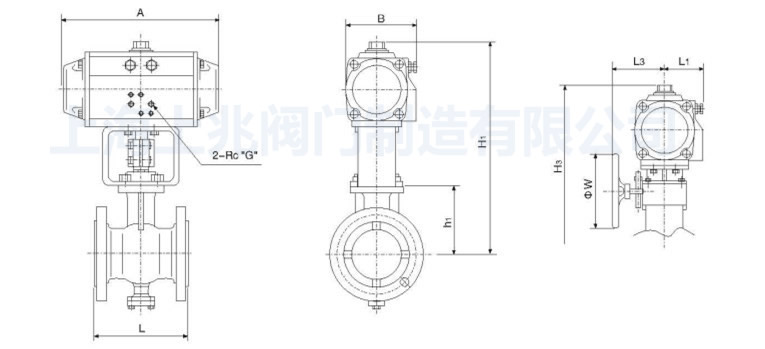 三、氣動(dòng)V型調(diào)節(jié)球閥--主要外形及連接尺寸: